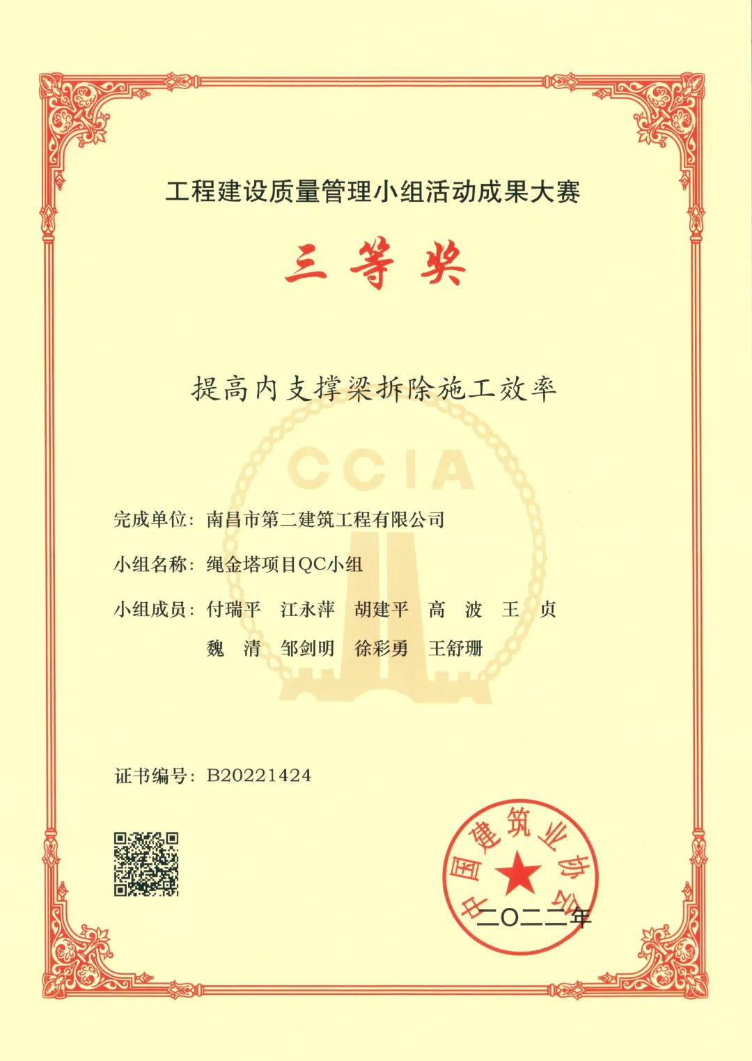 近日,公司繩金塔項(xiàng)目QC小組在2022年全國工程建設(shè)質(zhì)量管理小組活動成果大賽評選中榮獲三等獎(jiǎng)。