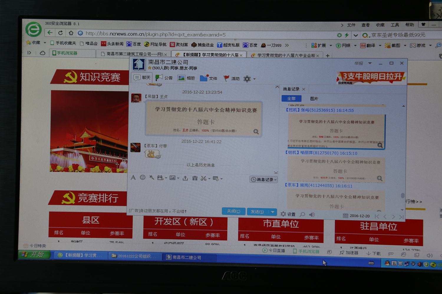 為深入學(xué)習(xí)宣傳黨的十八屆六中全會(huì)精神,激發(fā)廣大黨員學(xué)習(xí)熱情,營(yíng)造學(xué)習(xí)濃厚氛圍,根據(jù)市紀(jì)委、市組織部、市宣傳部聯(lián)合發(fā)文要求,公司組織全體黨員以及入黨積極分子、發(fā)展對(duì)象、預(yù)備黨員參加“知識(shí)競(jìng)賽”。