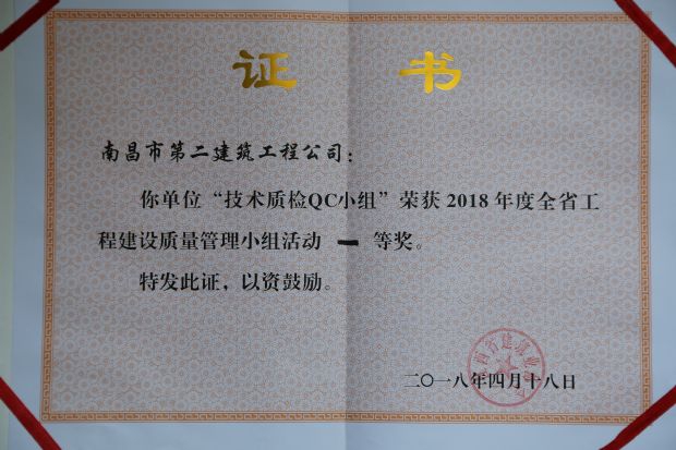 【概要描述】 昨日,在全省QC成果發(fā)布會上,公司技術(shù)質(zhì)檢QC小組榮獲2018年度全省工程建設(shè)質(zhì)量管理小組活動一等獎。