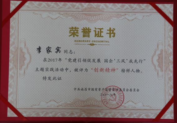 在2017年度國(guó)資委組織的“黨建引領(lǐng)促發(fā)展 國(guó)企“三風(fēng)”我先行”主題實(shí)踐活動(dòng)中,陳國(guó)明同志被評(píng)為“優(yōu)秀工作者”,李家兵同志被評(píng)為“創(chuàng)新精神”榜樣人物,徐棽同志被評(píng)為“工匠精神”榜樣人物。