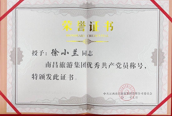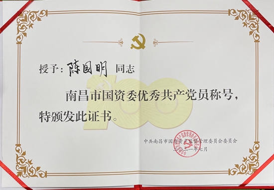 在隆重紀(jì)念中國共產(chǎn)黨成立100周年之際,南昌市國資委和南昌旅游集團(tuán)于近日對一批來自各條工作戰(zhàn)線上的優(yōu)秀黨員和優(yōu)秀黨務(wù)工作者及先進(jìn)基層黨組織進(jìn)行了表彰,獎(jiǎng)勵(lì)他(她)們在各自的工作崗位上履職盡責(zé)創(chuàng)先進(jìn)、立足崗位爭優(yōu)秀,在推動(dòng)企業(yè)高質(zhì)量發(fā)展中充分發(fā)揮戰(zhàn)斗堡壘和先鋒模范作用。其中,公司陳國明同志榮獲市國資委“優(yōu)秀共產(chǎn)黨員”稱號,公司黨委被評為南旅集團(tuán)“先進(jìn)基層黨組織”,黨員職工胡穎明、徐小蘭、王昕、王貞同志獲南旅集團(tuán)“優(yōu)秀共產(chǎn)黨員”稱號。